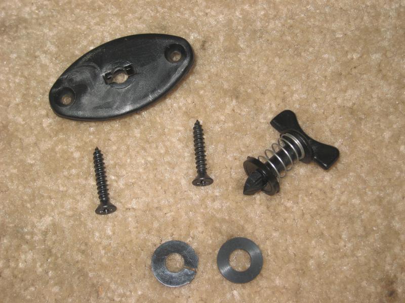 Below is our turn knob style "quick release" hardware kit. We also offer the same unit as a slotted knob as well. Cost is $3.50 per unit. Orders of 10 or more get a redueced rate of $3.00 ea. Shipping will be calculated according to the number of units and zip code being shipped to. Call to place your order today. 870-367-7083 or email boatwindshield@hotmail.com. Payment accepted in forms of personal check, money order or a paypal invoice will be sent.